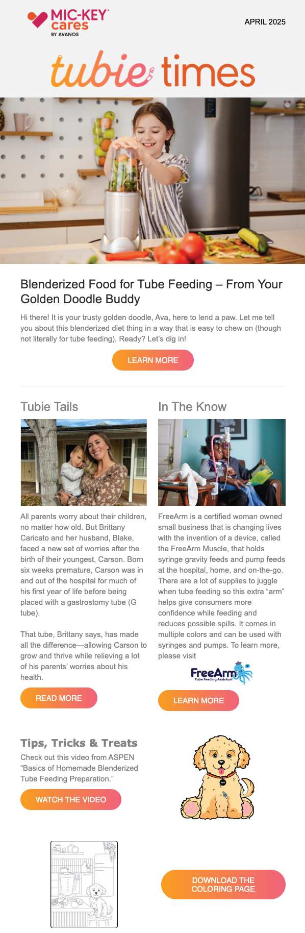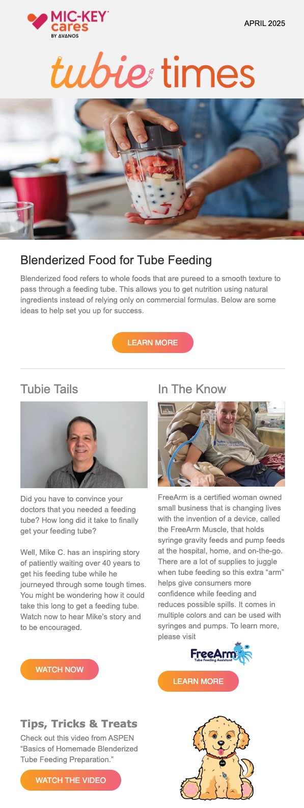 Having a feeding tube can bring about profound changes in one’s life. No matter how far you are on your journey, living with a feeding tube is not only about daily feeding, but also about managing everyday challenges. That’s why AVANOS created MIC-KEY* Cares, a complementary support program and community where we provide personalized support so you can get back to what matters.